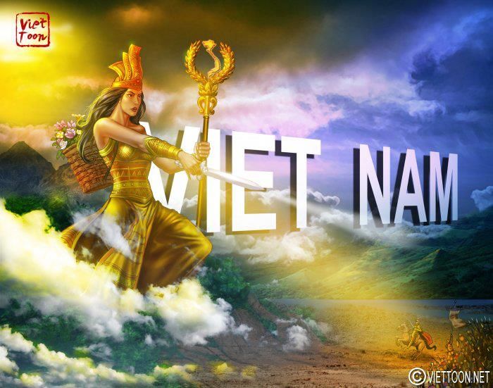 Mẹ Âu Cơ bảo vệ lãnh thổ ! Y phục dựa theo y phục đồng bào miền núi và vương miện trên trống đồng. Quyền trượng có hoa sen làm đài nâng 2 nhành lúa trĩu hạt bao quanh bản đồ Việt nam – tượng trưng cho dân tộc Việt nam. Tranh vẽ theo lối fantasy.