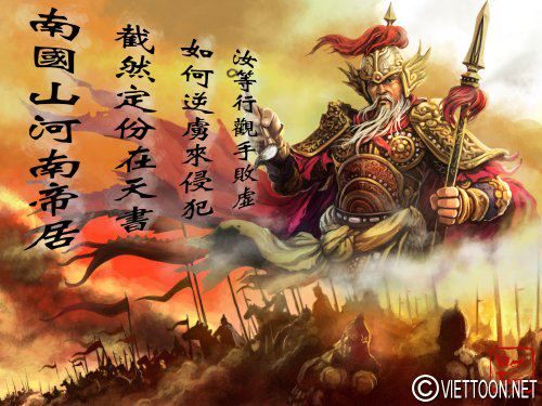 ![]() Lý Thường Kiệt và bài thơ Nam Quốc Sơn Hà bằng tiếng Hán – Hình Lý Thường Kiệt được phỏng theo các pho tượng Hộ Pháp Thần tại chùa cổ Việt Nam. Ví ông cũng như các vị anh hùng Việt nam là những vị thần thánh giáng trần bảo vệ non sông.